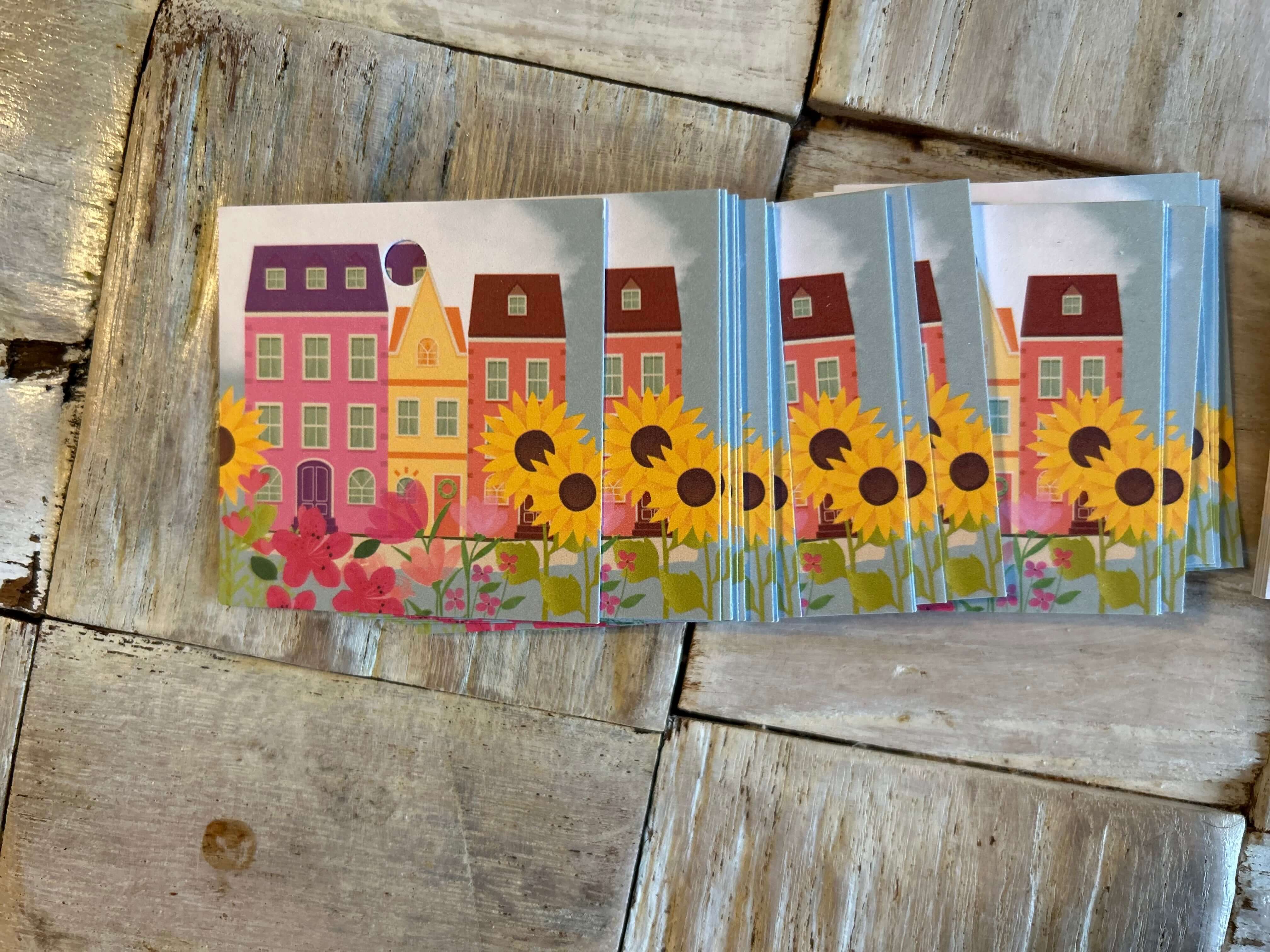 Houses in bloom 4x square gift tags 55mm x 55mm