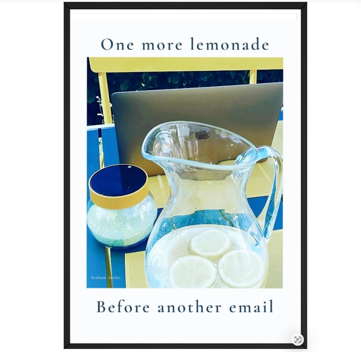 One more lemonade before another email – contemporary wall art print. Blue yellow giclée art